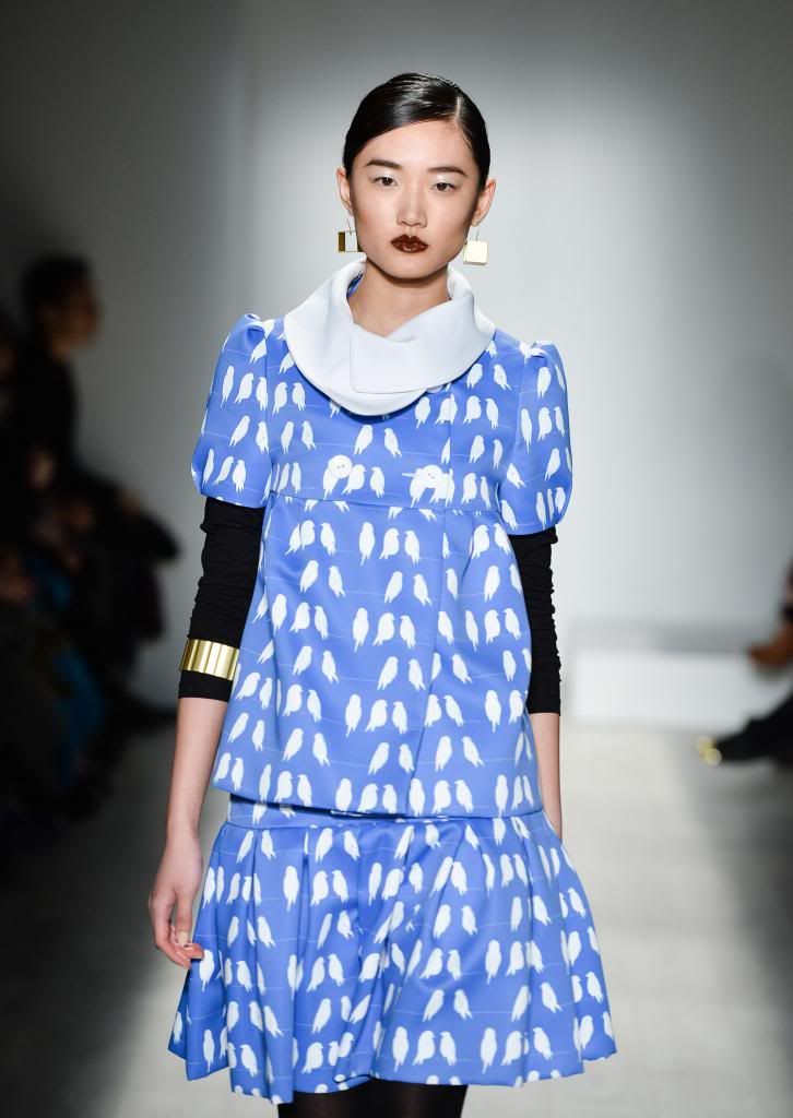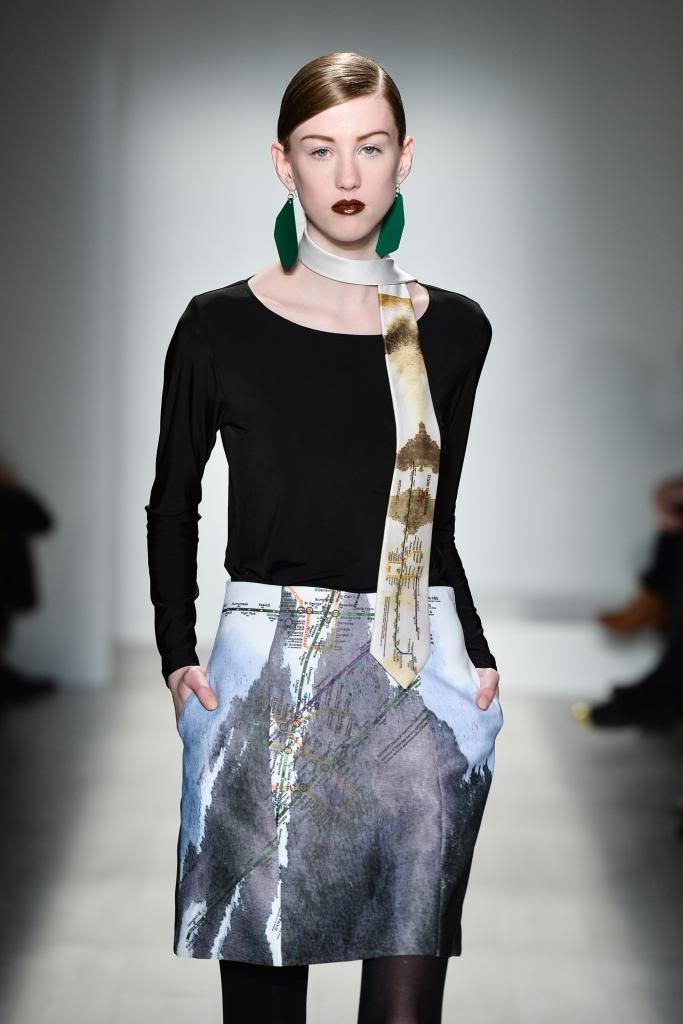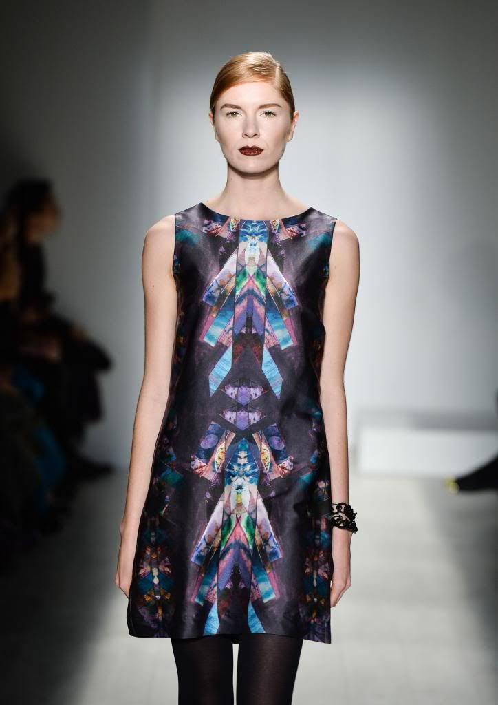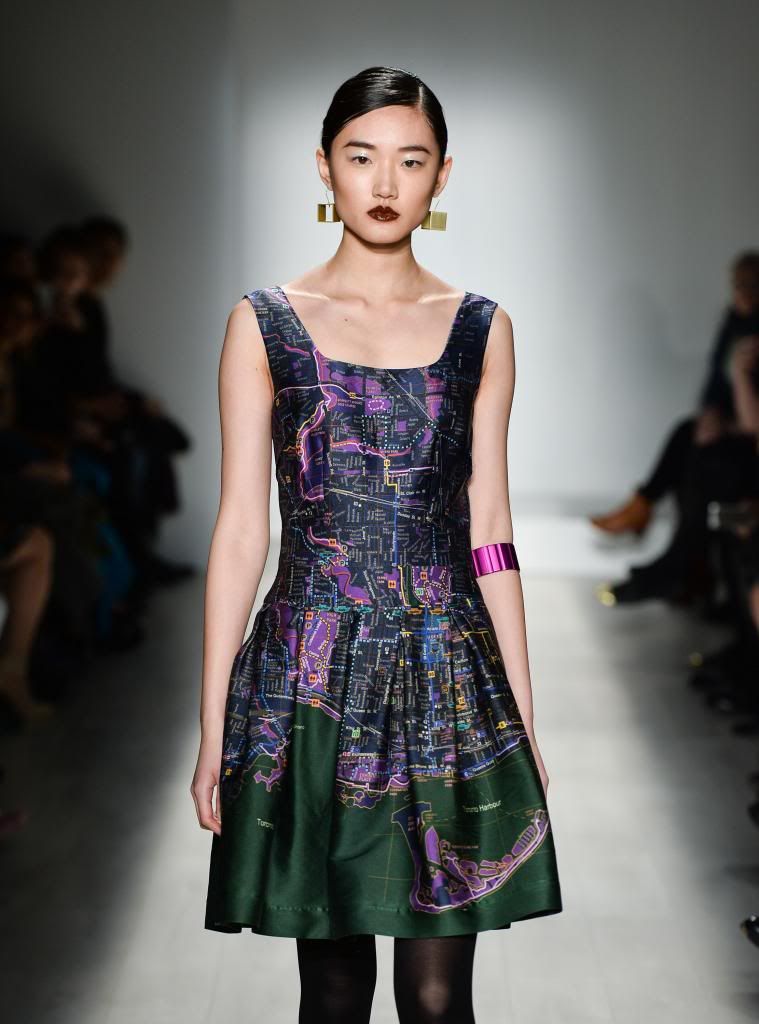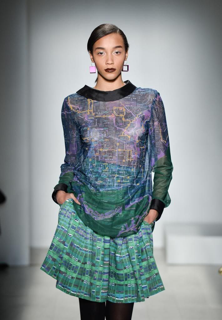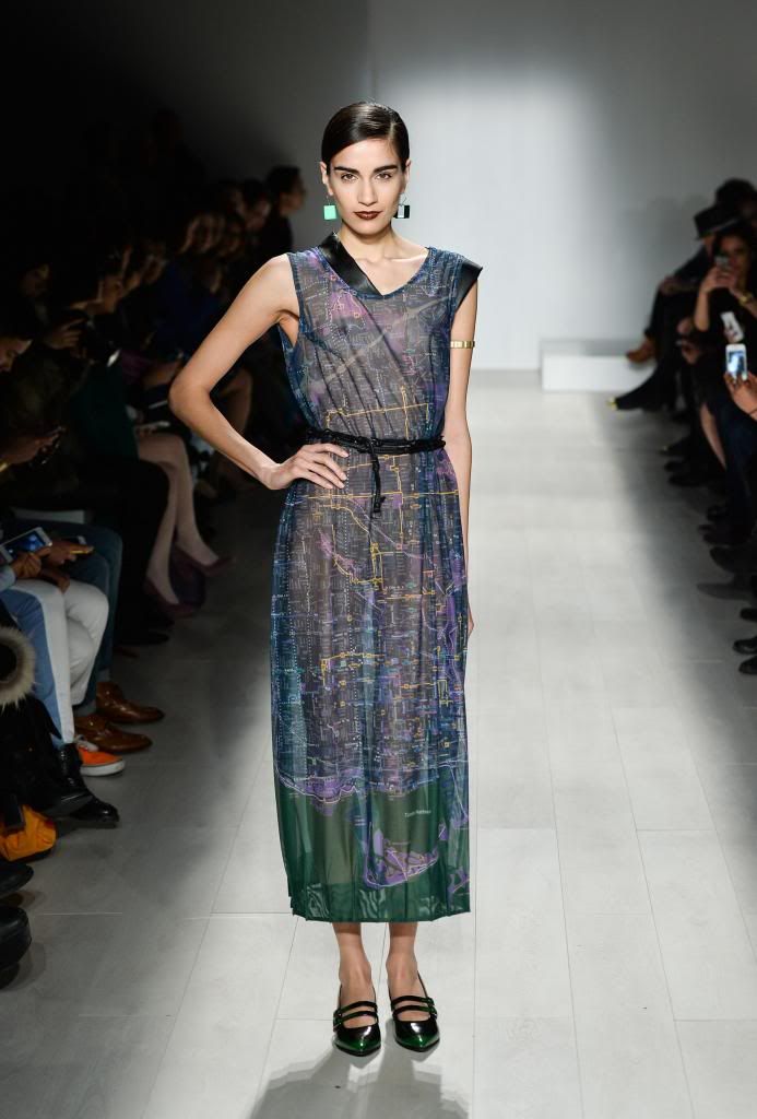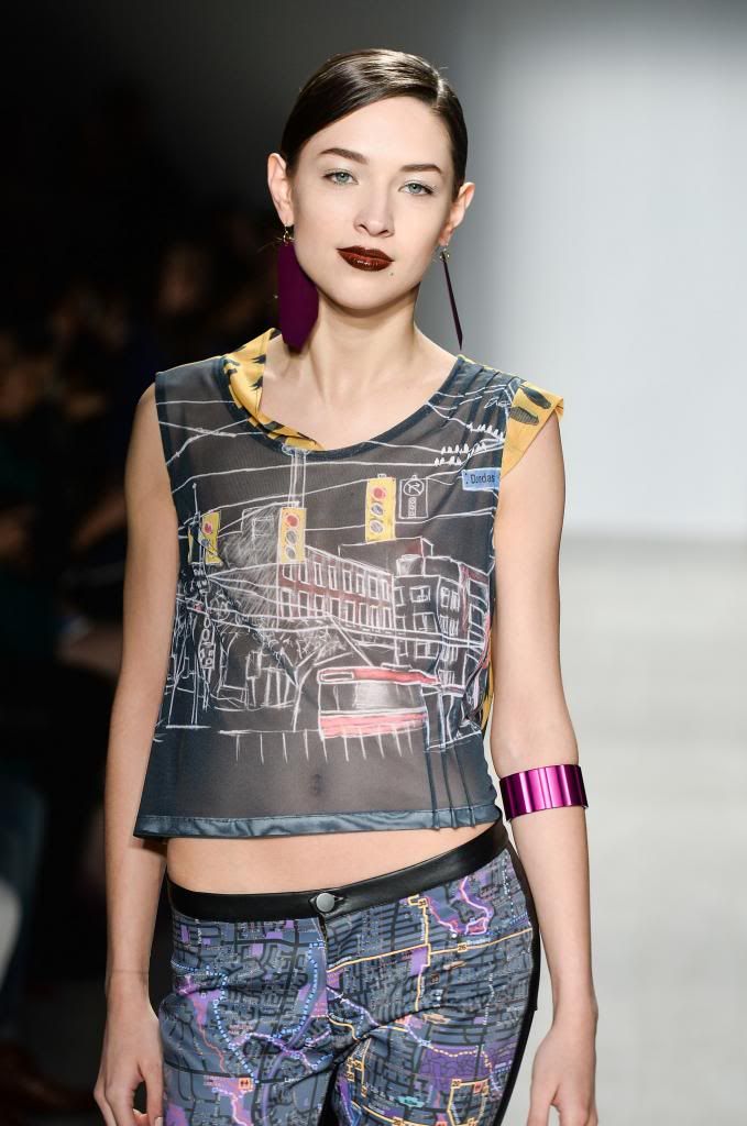 Bold graphics dominated the Anu Raina FW14 runway, originally from Kashmir, India the collection was inspired by the designers first Fall in the city. From maps of Toronto to prints of the skyline at night, and even the subway and neighbourhoods such as Yorkville and Parkdale; there's a little bit of Toronto in each piece. Standout pieces for me are for sure those blue bird print trousers, and that map dress with the green at the bottom (photo #5) so neat! Watch the full show by going here.