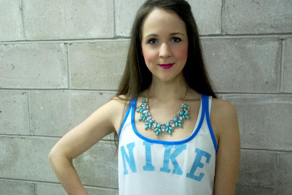 Love this look! The combo of the necklace and athletic tank is so unexpected but perfect!!