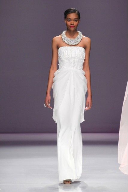 David Dixon shocked its viewers with a full collection of wedding dresses instead of a typical Fall/Winter collection. The Fall Winter 2014 collection was designed as a preview of what can be expected from the Kleinfeld Bridal Boutique opening at Hudson's Bay in Toronto this May.