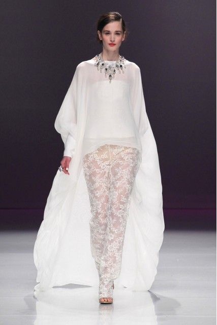 From the traditional white bridal dresses to beautiful blushing pink hues; the show gave plenty of gorgeous options for the classic to the unconventional (see lace trousers). Opting for luxe fabrics we saw a lot of intricate Chantilly lace (my personal favorite), soft silk organza, silk fille and