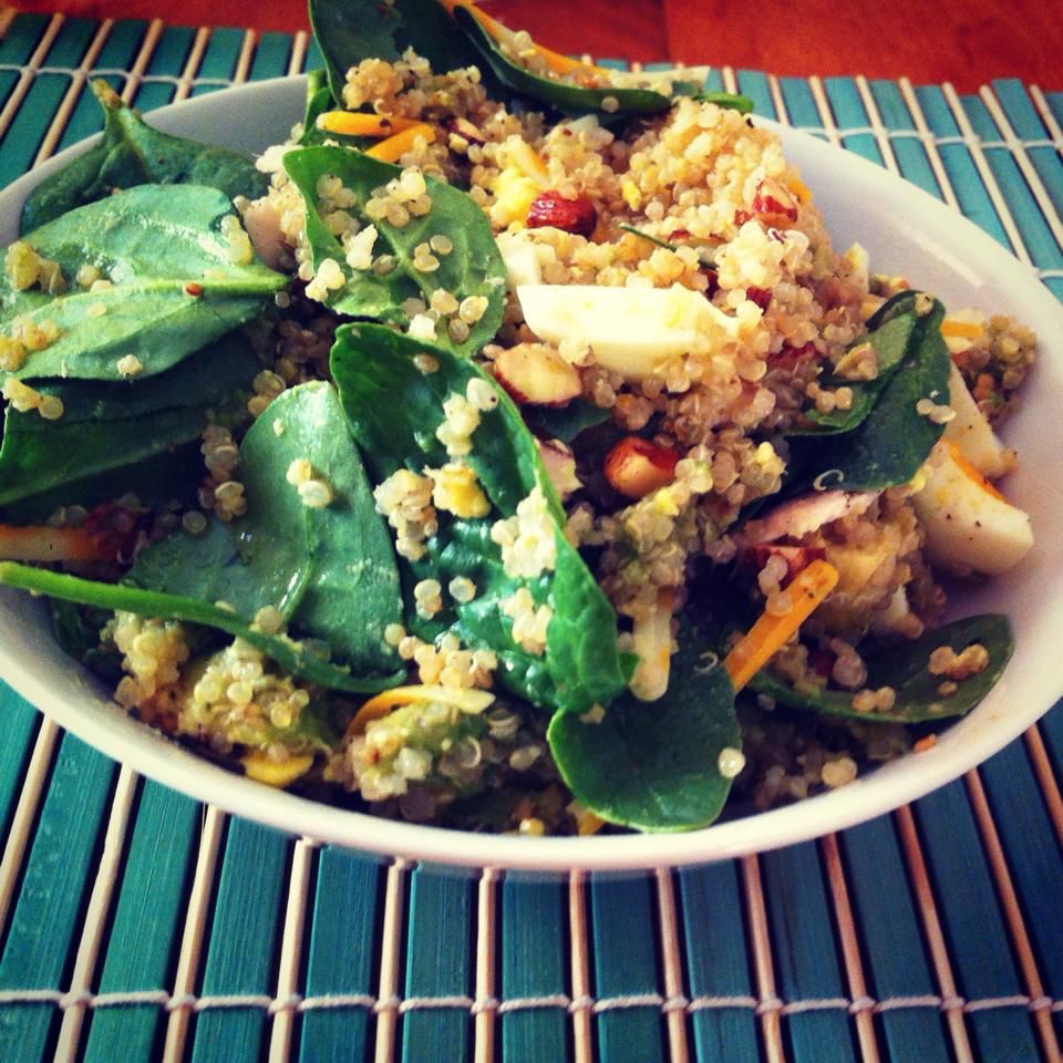 With some left over quinoa in the fridge from dinner the night before and a few other key ingredients I put together probably one of the most delicious salads I'd eaten in a while. With the crunch of the almonds, and the creaminess of the avocado I was in heaven, and bonus it took like zero effort too make. If you can chop almonds, and boil an egg you can do this!