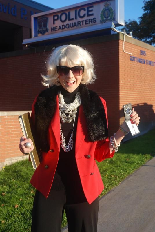 but other than my little "Fashion Police" badge (which I constructed myself from a police costume set that was purchased at the Dollar Store, and yes I studded it)