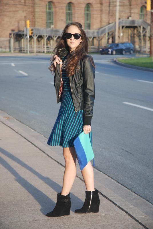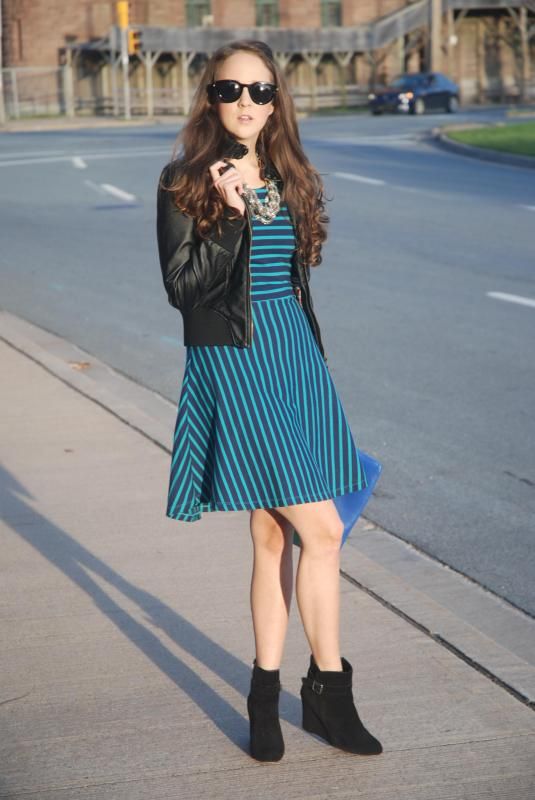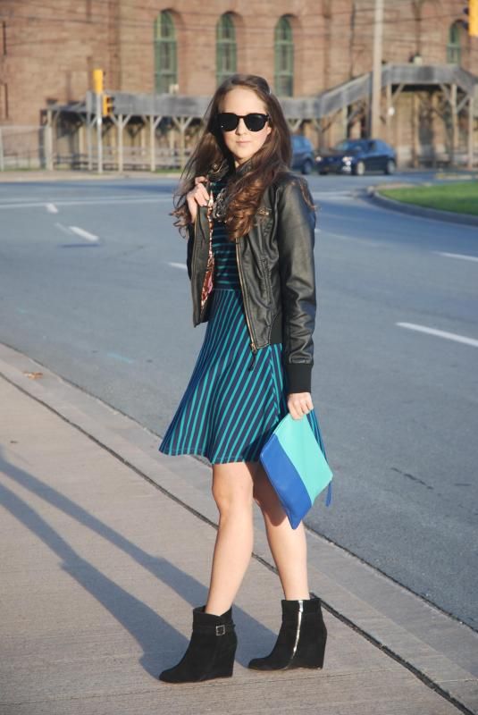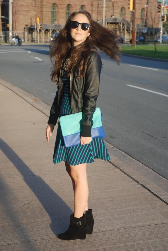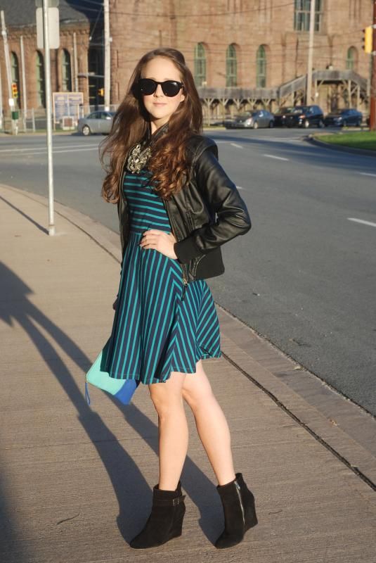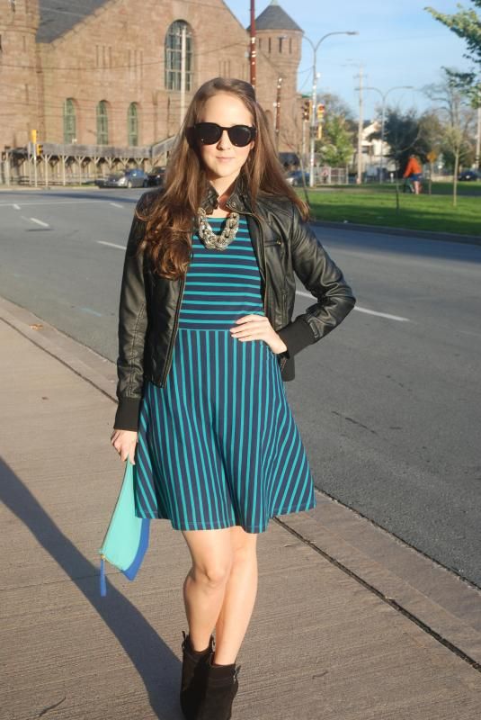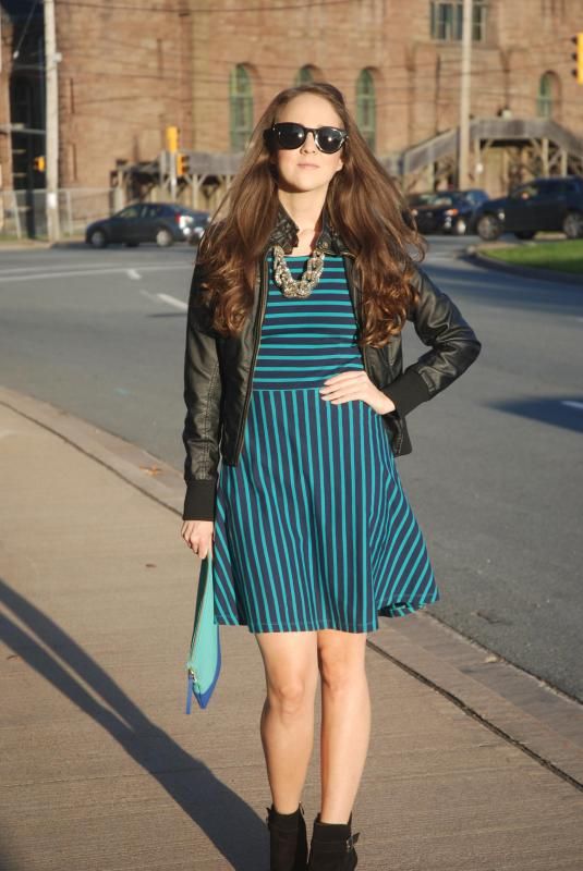 Fall Fashion, Blue Dress, Old Navy, Gap, Winners, Vince Camuto, Leather Jackets, Clutch, Sunnies, Polette, Atlantic Fashion Week, AFW, Atlantic Fashion