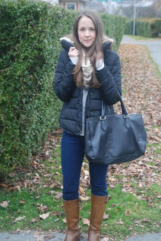 Featured Items: Puffer Coat: c/o Old Navy (on sale here) | Jumper, Tommy Hilfiger | Scarf: c/o Gap | Boots. Very Volatile (via Biscuit). 1969 "Always Skinny" Jeans: c/o Gap (amazingly comfortable available here).