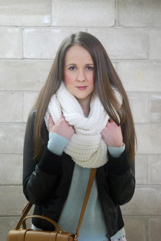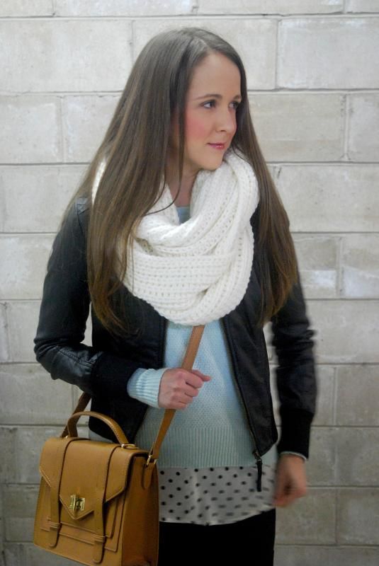 With the constant fluctuating temperatures this winter, the only means of survival is plenty of layers! Lately I've been partial to pairing my knit sweaters with cute peek-a-boo blouses underneath. And who could forget a big chunky scarf? I love this one from Banana Republic!