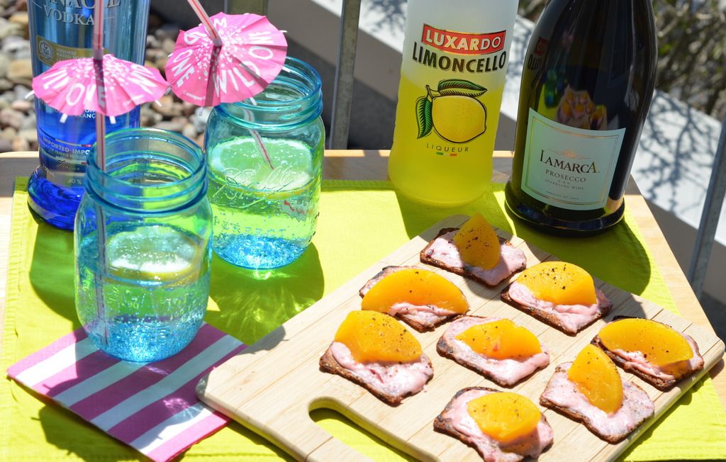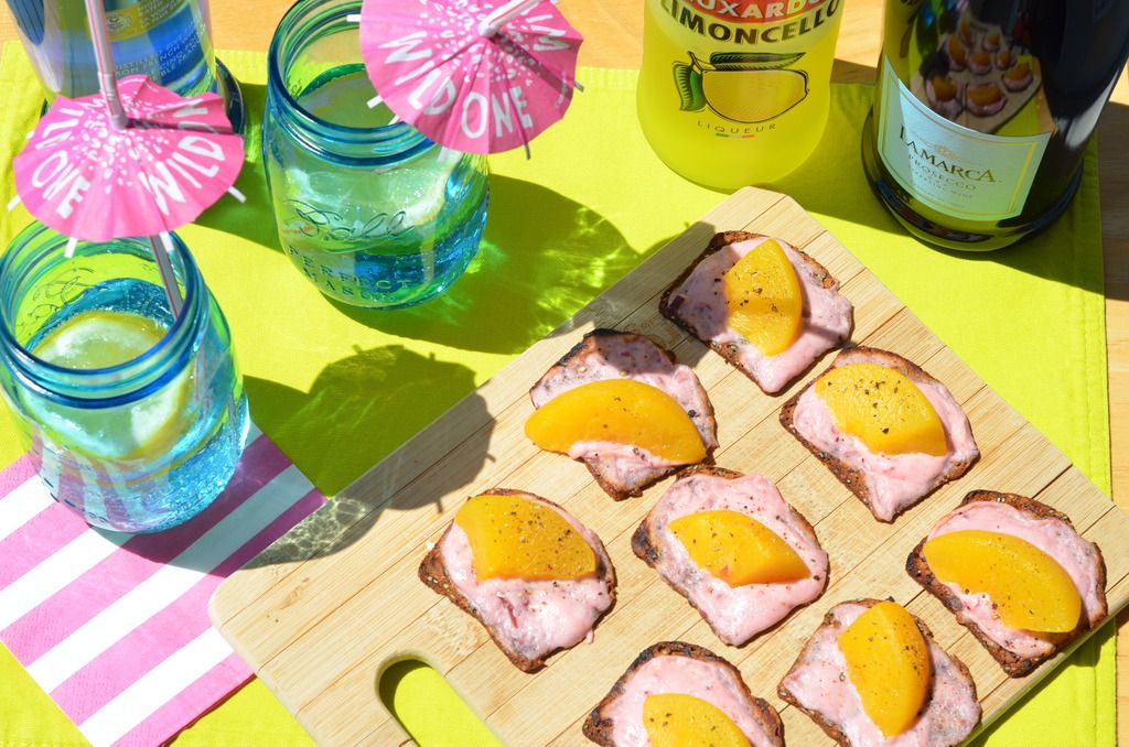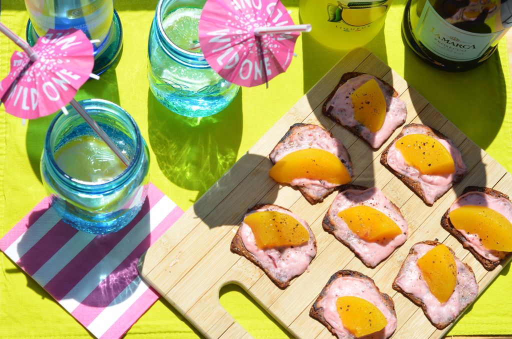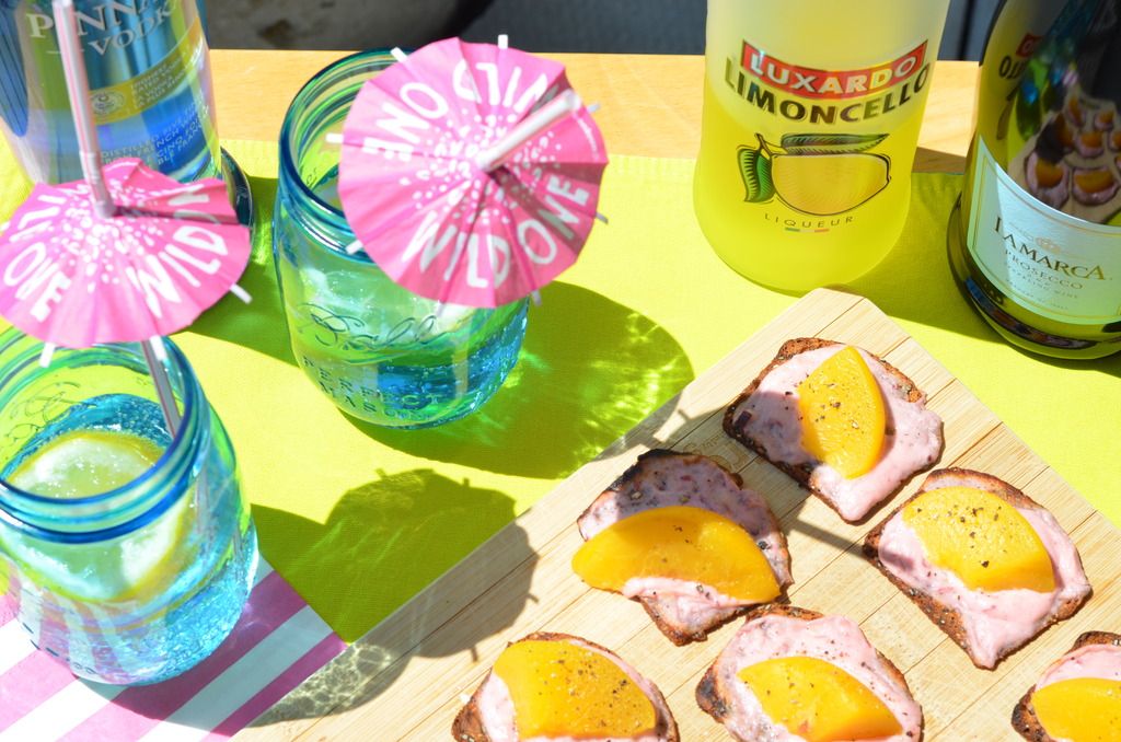 Speaking of summer... what says summer more than fresh peaches? UGH I love them so much, so when I found this extremely easy recipe that also included goat cheese and pepper ? I HAD to try it out, and then of course I had to find a fun drink to go with it. Cheers to summer being right around the corner blog reader.