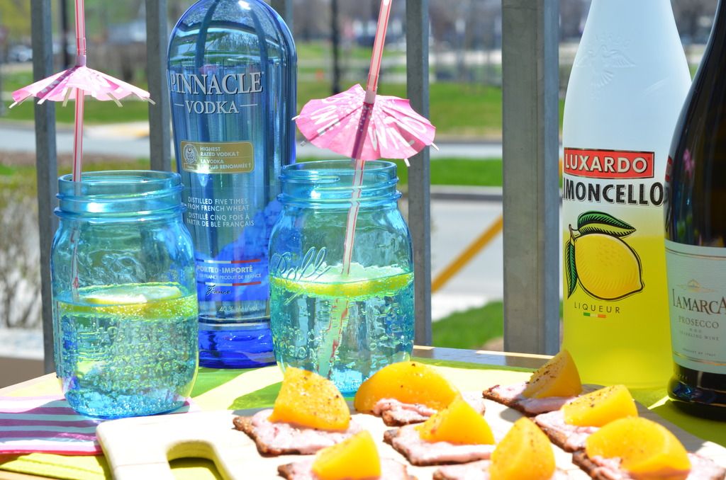 Because this recipe is a little rich (with the goat cheese) I decided to pair it with a simple drink recipe. I made two different versions, and you can decide which you like better. I knew I wanted something fizzy, so I made a vodka version of a French 75 (since the vodka is made from French Wheat I figured why not), and then I made another with lemoncello and cucumber for another fresh summer drink. I will warn you blog readers these drinks are pretty strong, so please sip responsibly.